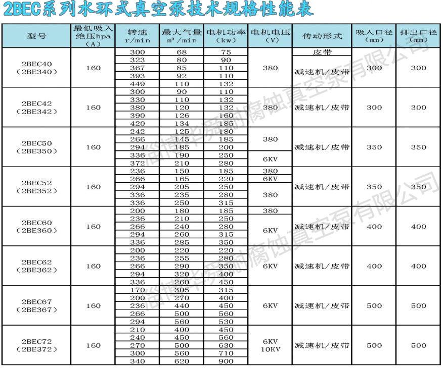 2BE系列水環(huán)真空系及壓縮機,是我公司在多年科研成果和生產(chǎn)經(jīng)驗的基礎上,結(jié)合國際同類產(chǎn)品先進技術,研制開發(fā)的高效節(jié)能產(chǎn)品,通常用于抽吸不含固體顆粒,不溶于水,無腐蝕性的氣體,以便在密閉容器中形成真空和壓力。通過改變結(jié)構(gòu)材料,亦可用于抽吸腐蝕氣體或腐蝕性液體做工作液。廣泛用于造紙、化工、石化、輕工、制藥、食品、冶金、建材、電韻、煤暖、金屬礦山、化等行業(yè)。本系列泵采用單級單作用的結(jié)構(gòu)形式,具有結(jié)構(gòu)簡單,維修方便,運行可,高效節(jié)能的優(yōu)點,并能適應排水量大,載荷沖擊波動等惡劣工況。我們對關鍵部件,如分配板,葉輪和系軸進行了系列優(yōu)化設計,簡化了結(jié)構(gòu),提高了性能,實現(xiàn)節(jié)能。采用球墨鑄鐵或焊接葉輪,葉片一次沖壓成形,型線合理:輪轂全部加工,從根本上解決了動平衡問題。葉輪與系軸采用熱裝過盈配合,性能可靠,運行平穩(wěn)。葉輪焊接后,整體進行熱處理,使葉片具有良好的韌性,葉片的抗沖擊,抗折彎能力得以根本保證,能適應載荷沖擊波動等惡劣工況。2BE系列泵,自帶氣水分離器,多位置設有排氣口,泵設有排氣檢修口,葉輪與分配板間通過定位軸承兩娉壓益調(diào)整,安裝使用方便,操作簡單,便于維修。